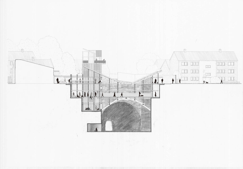 This project is inspired by the Royal Liver Building, a landmark clearly visible from the university campus. The building’s two Liver Birds—Betty and Bella—face the sea and the city, symbolizing protection over voyages and urban life, yet they never face each other. Their legend inspired my exploration of visibility, separation, and emotional connection in urban space. The site is physically and emotionally fragmented: trains run underground, the terrain rises from the waterfront inward, and high retaining walls isolate pedestrians, weakening social interaction and creating a sense of detachment.